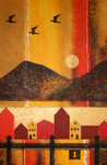2008Dit werk typeert voor mij een stukje Noorwegen in de zon. Donkere bergen en kleurige huisjes, een landschap waar ik tijdens deze vakantie even toegang tot had. Onvergetelijke indrukken van een mooi land.